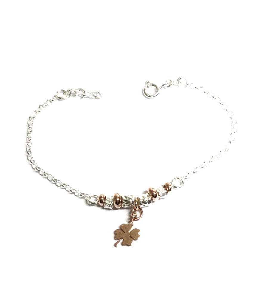 Bracciale catena con pepite rondelle e quadrifoglio pendente