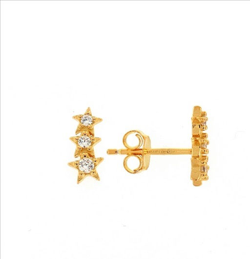 Orecchini a lobo tripla stella con zirconi (2 paia)