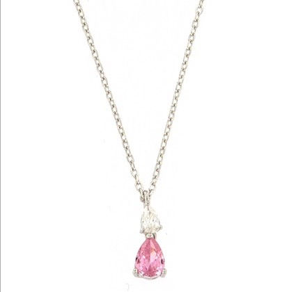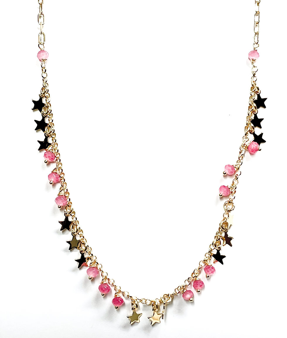 Collana con pietrine sfaccettate e palline con cuore pendente